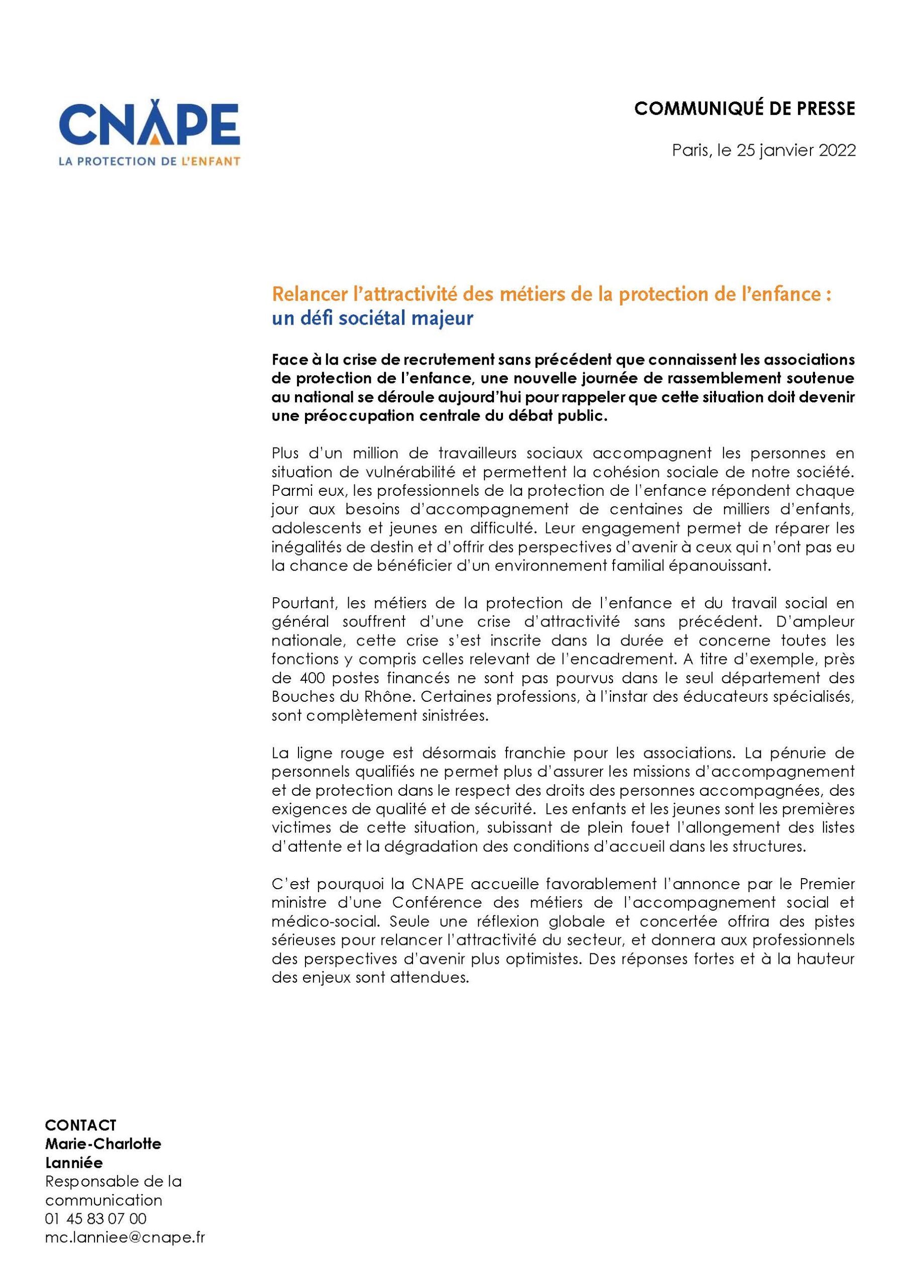 le 25 janvier 2022 : la CNAPE communique sur l’attractivité des métiers de la protection de l’enfance : un défi sociétal majeur Caroline souteyrand2022-02-01T17:05:23+02:00